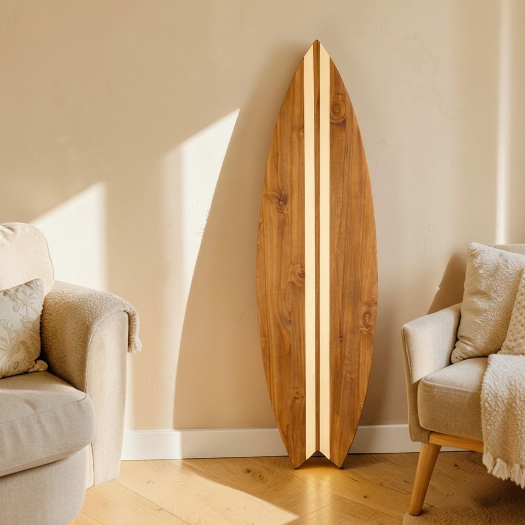 Wood Surfboard Wall Art – Surf Decor Wall Hanging – Beach House Wall Decor – Coastal Living Room Decor